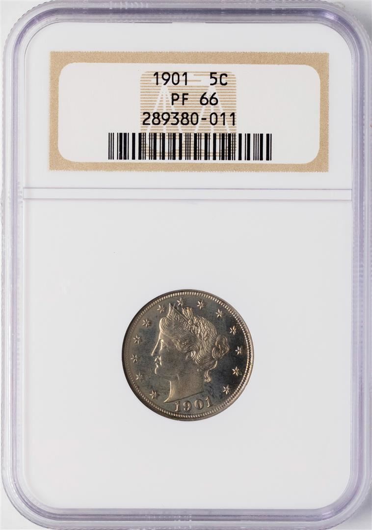 One 1901 Proof Liberty V Nickel Coin NGC PF66. NGC Certified.