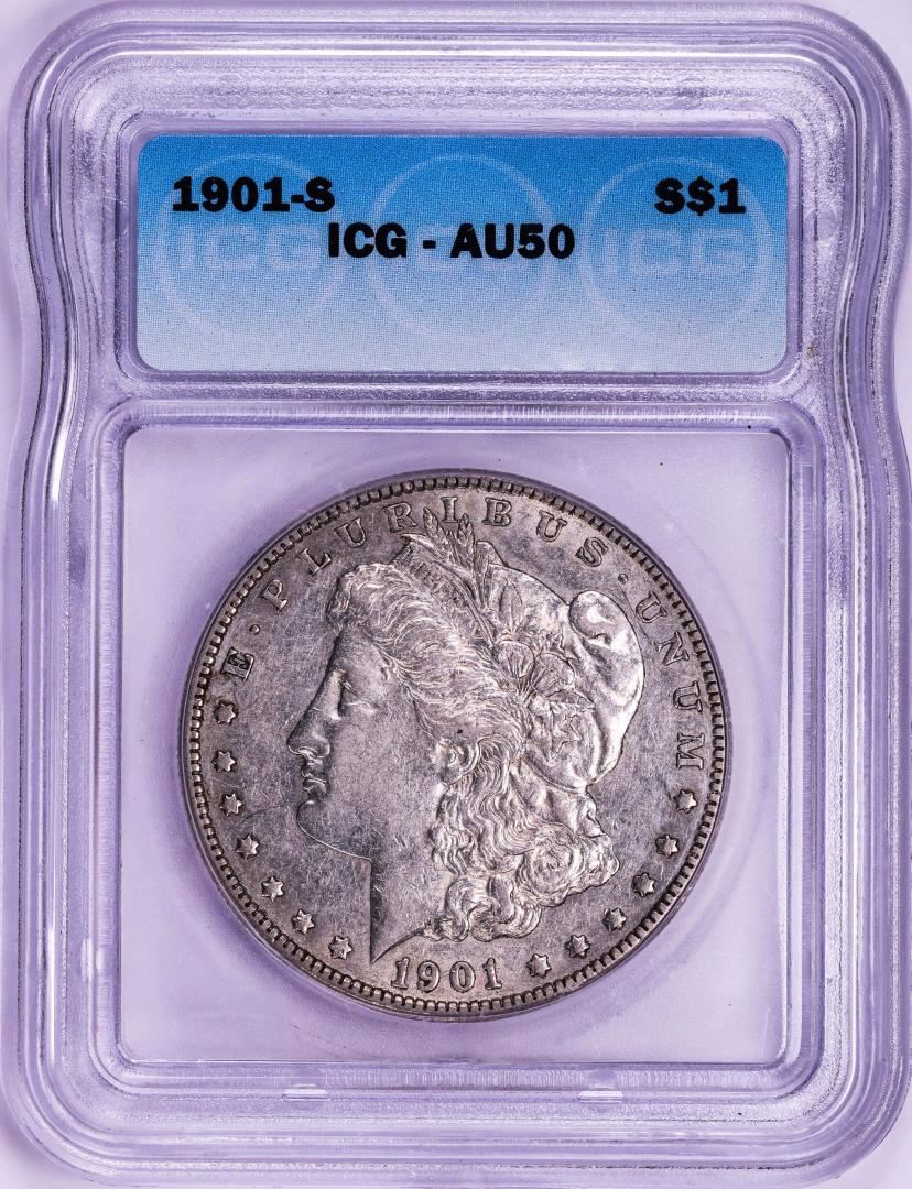 One 1901-S $1 Morgan Silver Dollar Coin ICG AU50. ICG Certified.