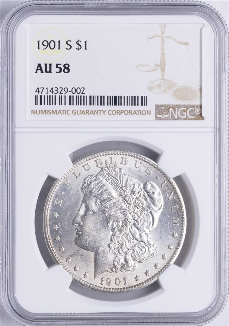 One 1901-S $1 Morgan Silver Dollar Coin NGC AU58. NGC Certified.