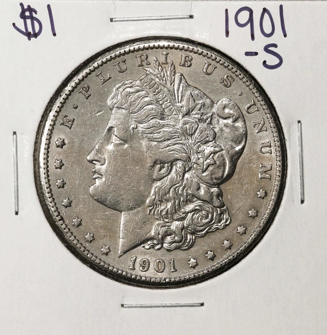 One 1901-S $1 Morgan Silver Dollar Coin.