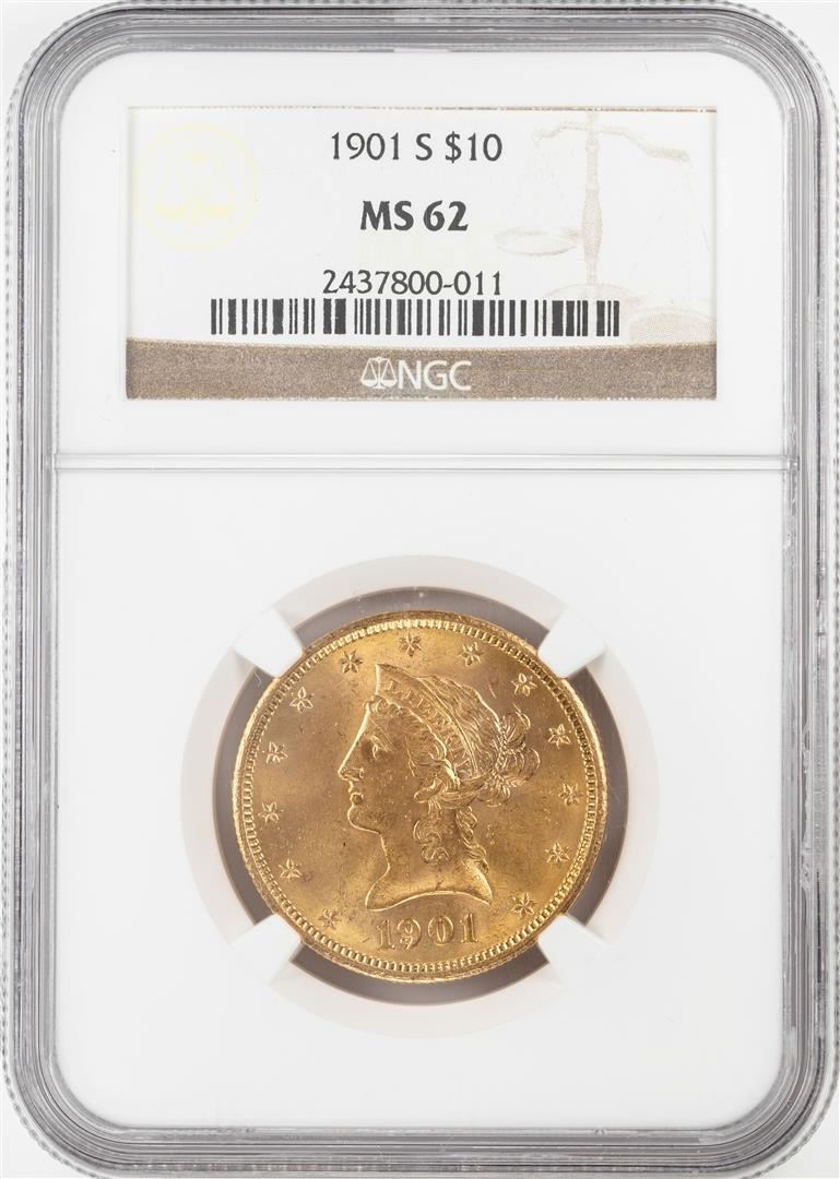 One 1901-S $10 Liberty Head Eagle Gold Coin NGC MS62. NGC Certified.