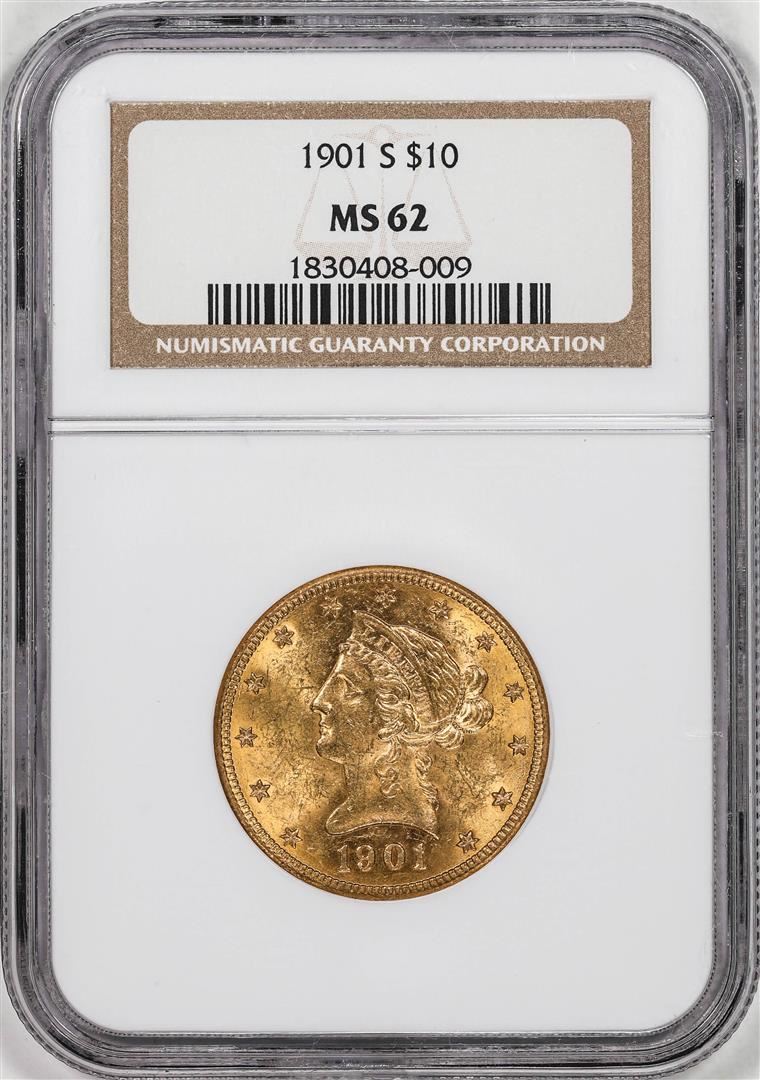 One 1901-S $10 Liberty Head Eagle Gold Coin NGC MS62. NGC Certified.