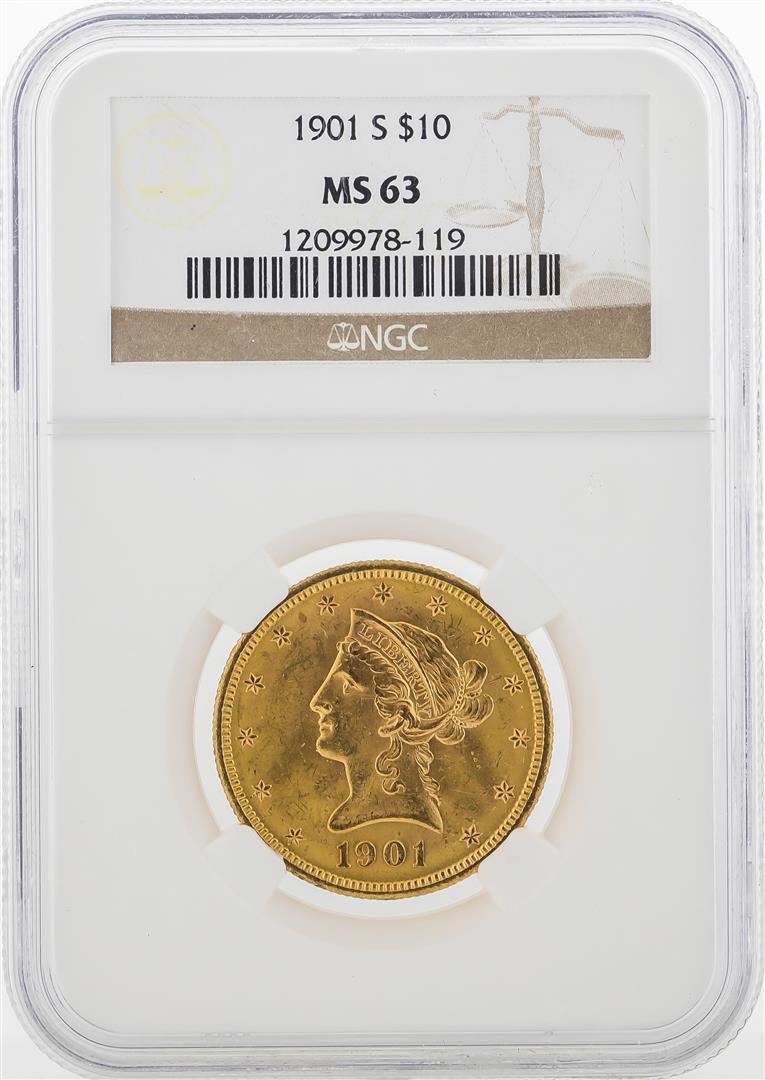 One 1901-S $10 Liberty Head Eagle Gold Coin NGC MS63. NGC Certified.