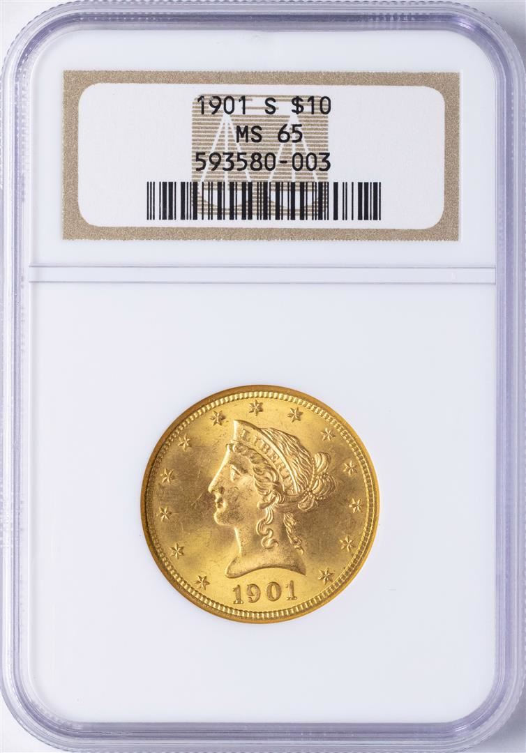 One 1901-S $10 Liberty Head Eagle Gold Coin NGC MS65. NGC Certified.