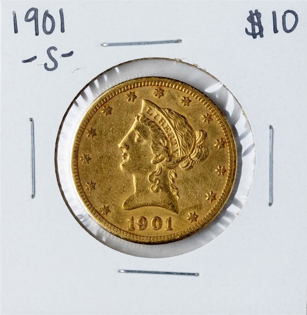 One 1901-S $10 Liberty Head Eagle Gold Coin.