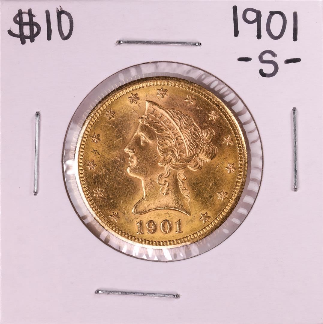 One 1901-S $10 Liberty Head Eagle Gold Coin.