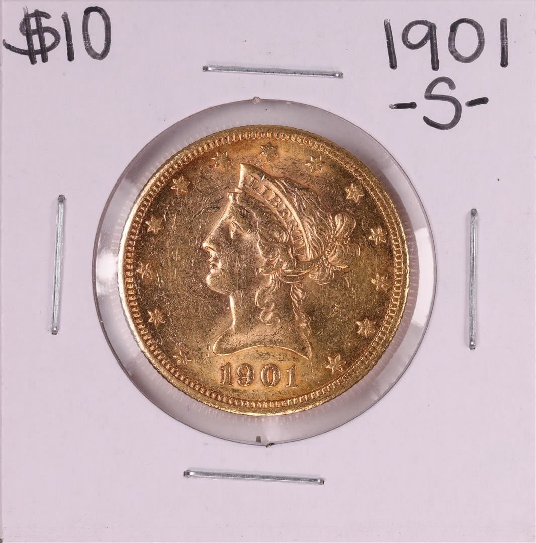 One 1901-S $10 Liberty Head Eagle Gold Coin.