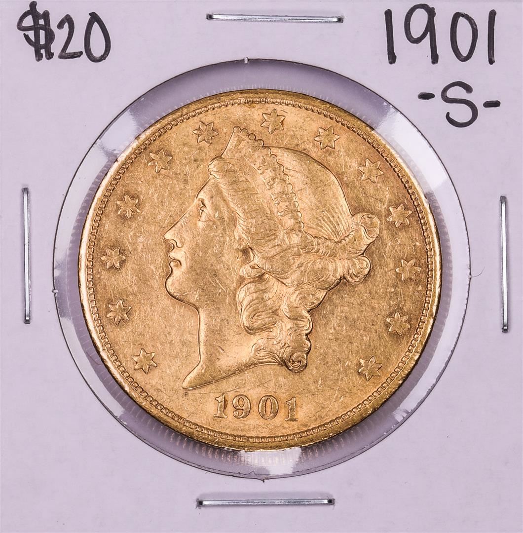 One 1901-S $20 Liberty Head Double Eagle Gold Coin.