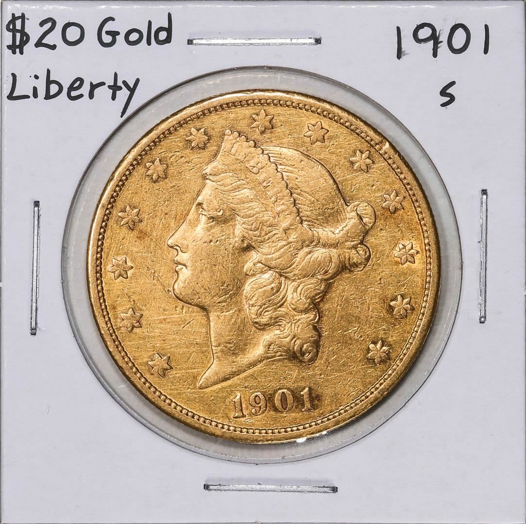 One 1901-S $20 Liberty Head Double Eagle Gold Coin.