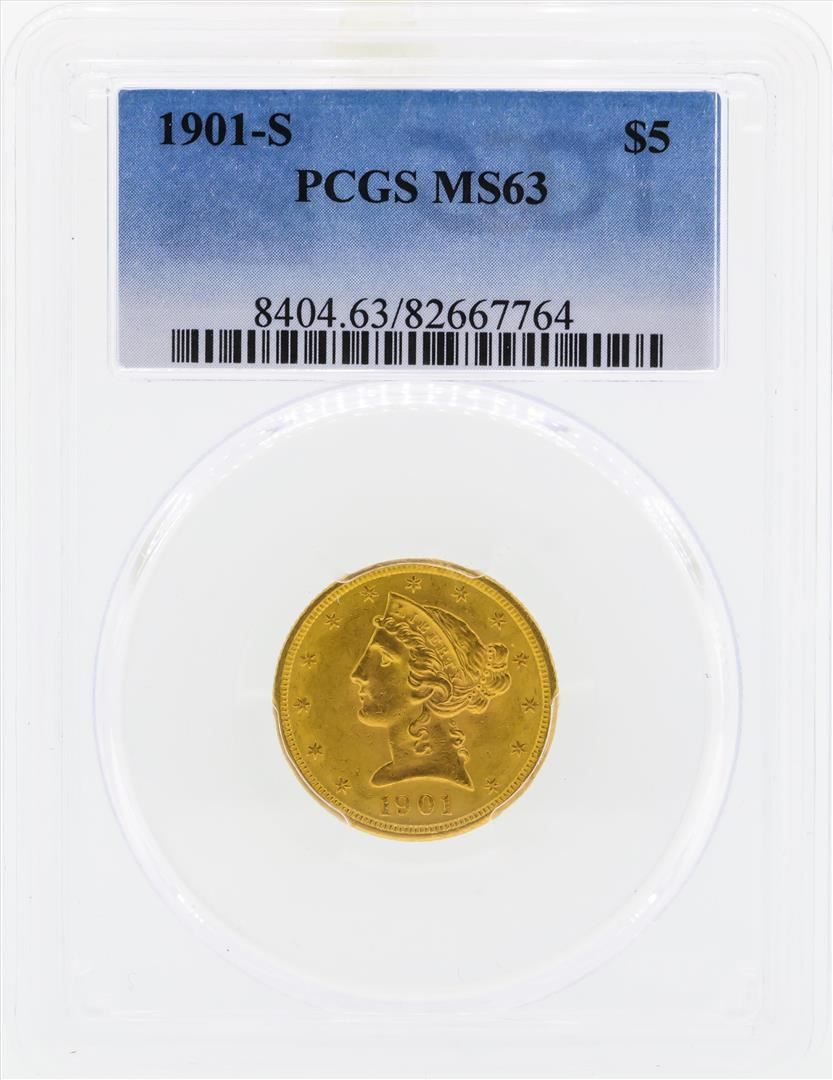 One 1901-S $5 Libertry Head Half Eagle Gold Coin PCGS MS63. PCGS Graded.