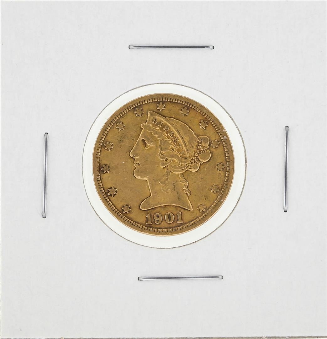 One 1901-S $5 Liberty Head Half Eagle Gold Coin.