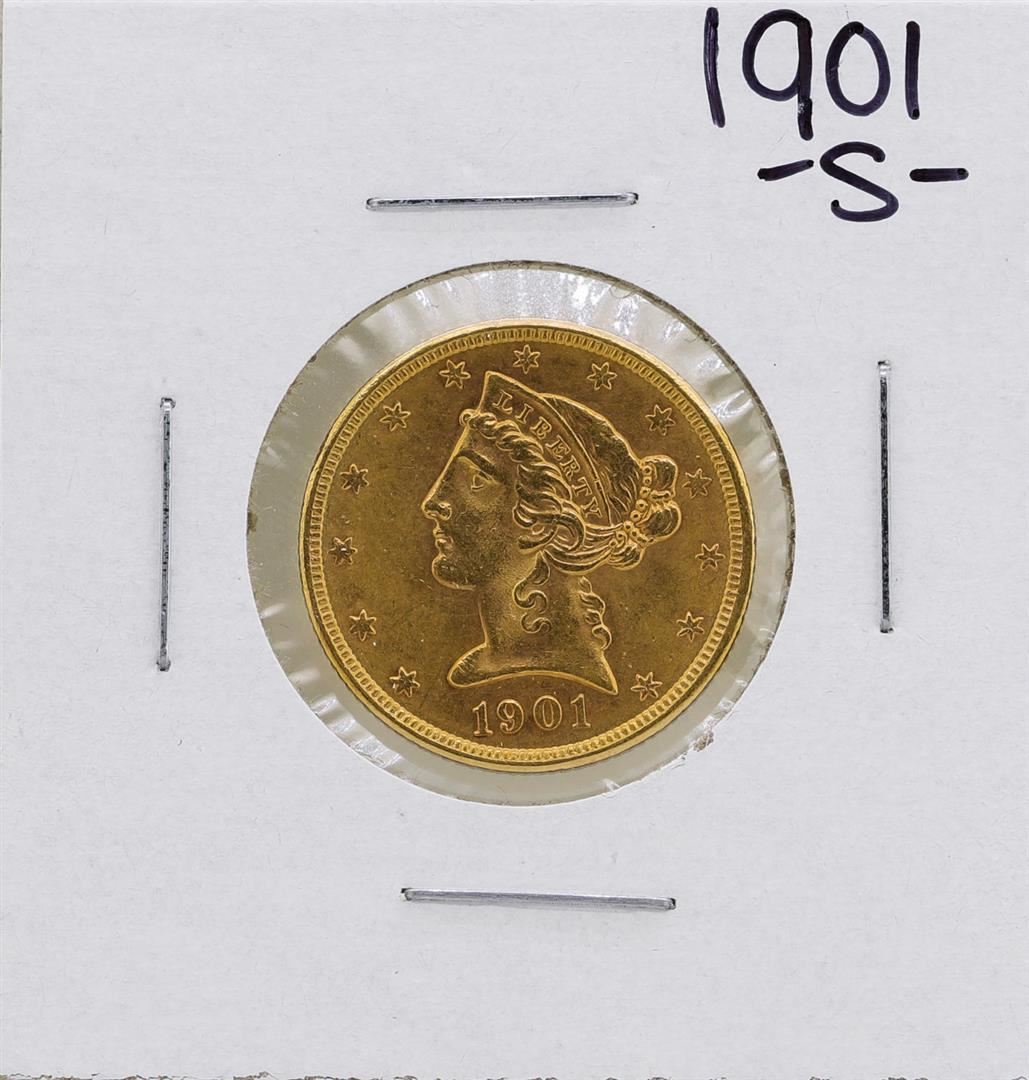One 1901-S $5 Liberty Head Half Eagle Gold Coin.