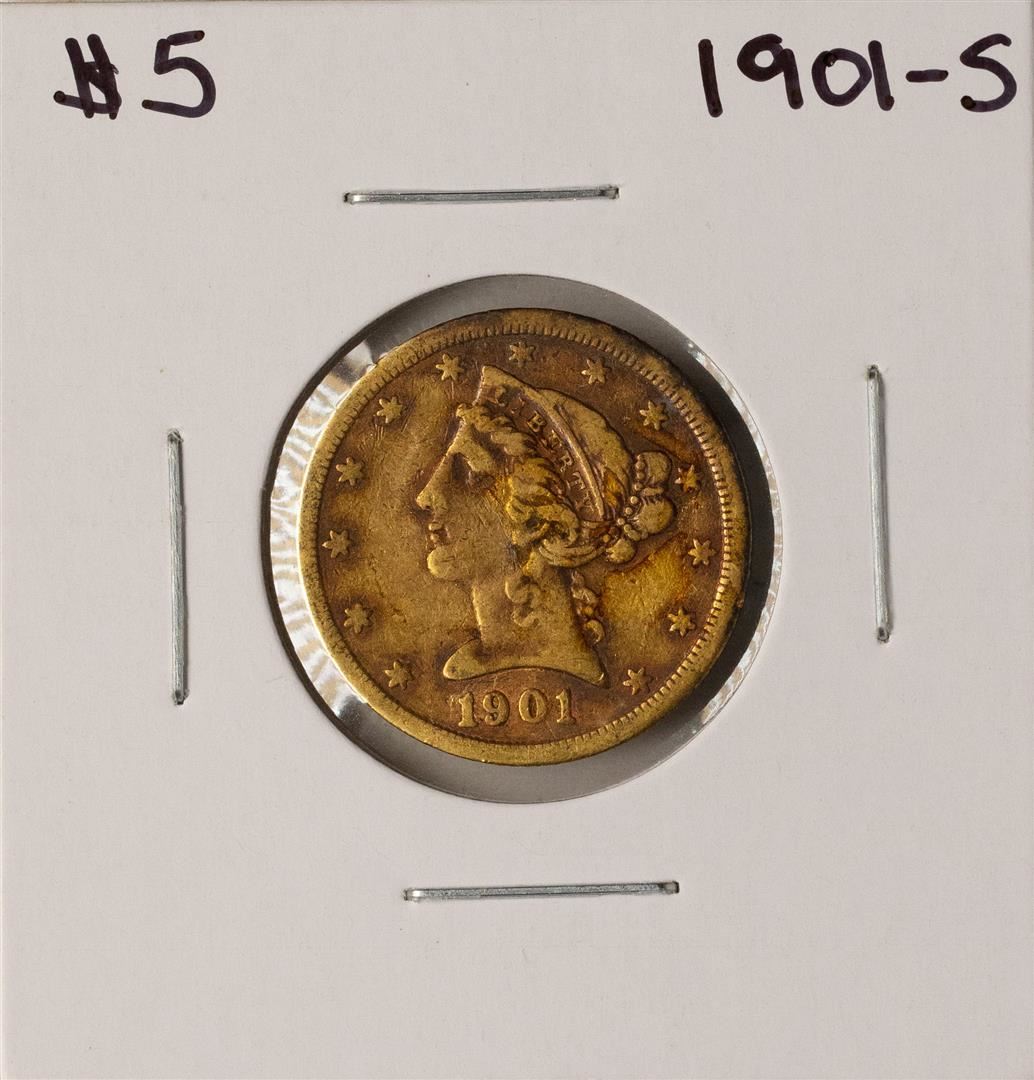 One 1901-S $5 Liberty Head Half Eagle Gold Coin.