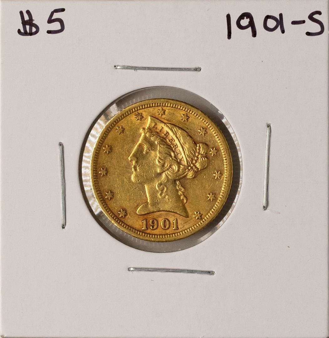 One 1901-S $5 Liberty Head Half Eagle Gold Coin.