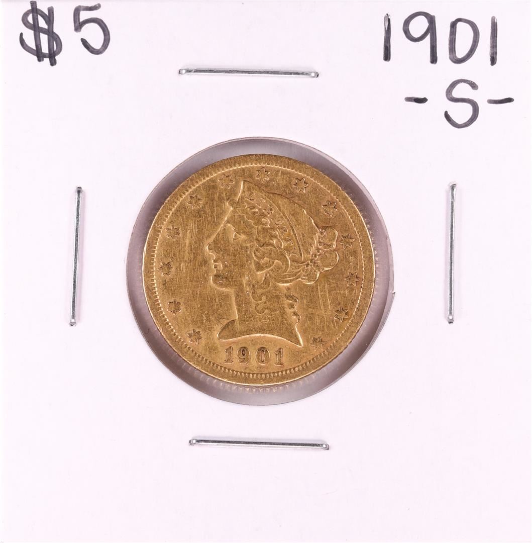 One 1901-S $5 Liberty Head Half Eagle Gold Coin.