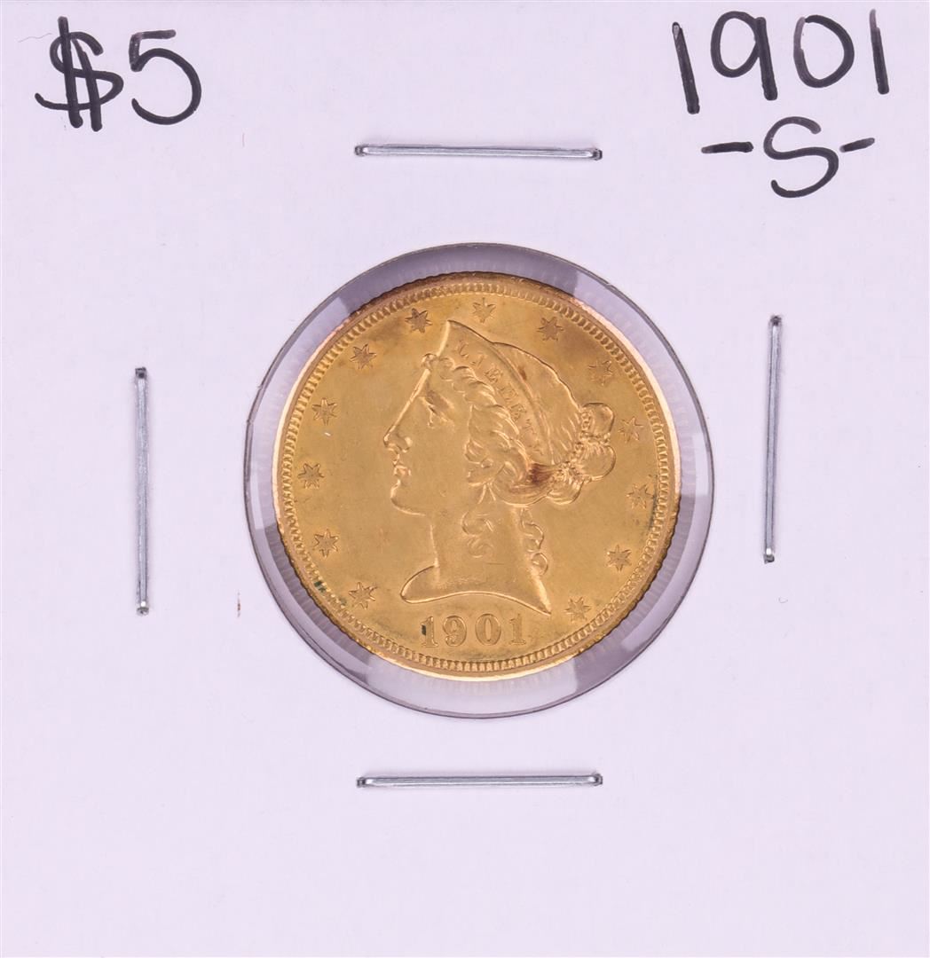 One 1901-S $5 Liberty Head Half Eagle Gold Coin.