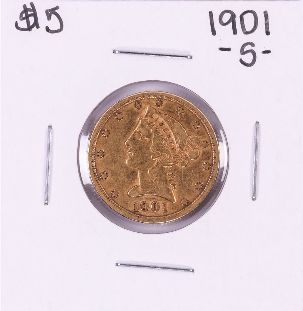One 1901-S $5 Liberty Head Half Eagle Gold Coin.