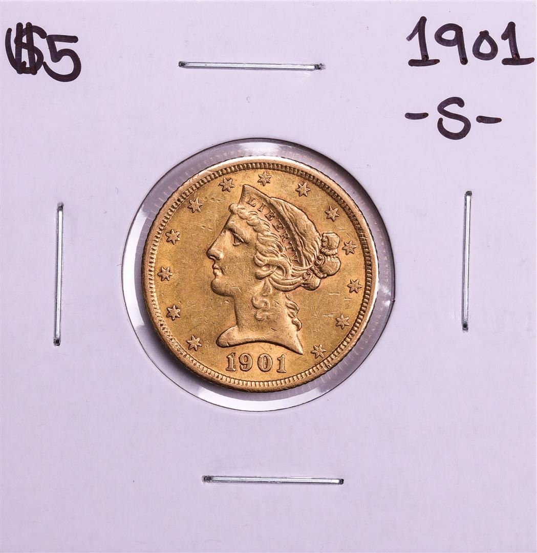 One 1901-S $5 Liberty Head Half Eagle Gold Coin.