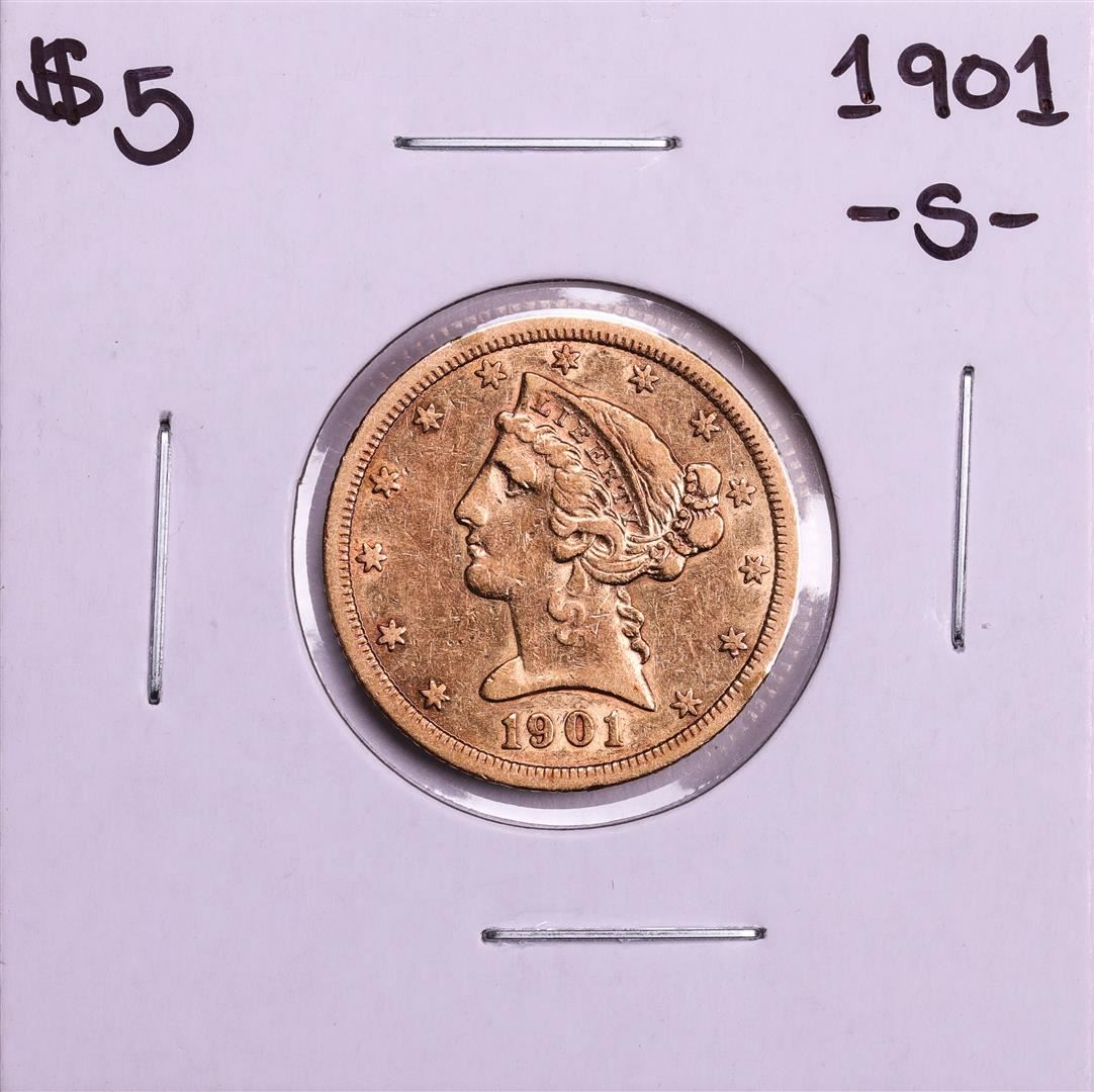 One 1901-S $5 Liberty Head Half Eagle Gold Coin.
