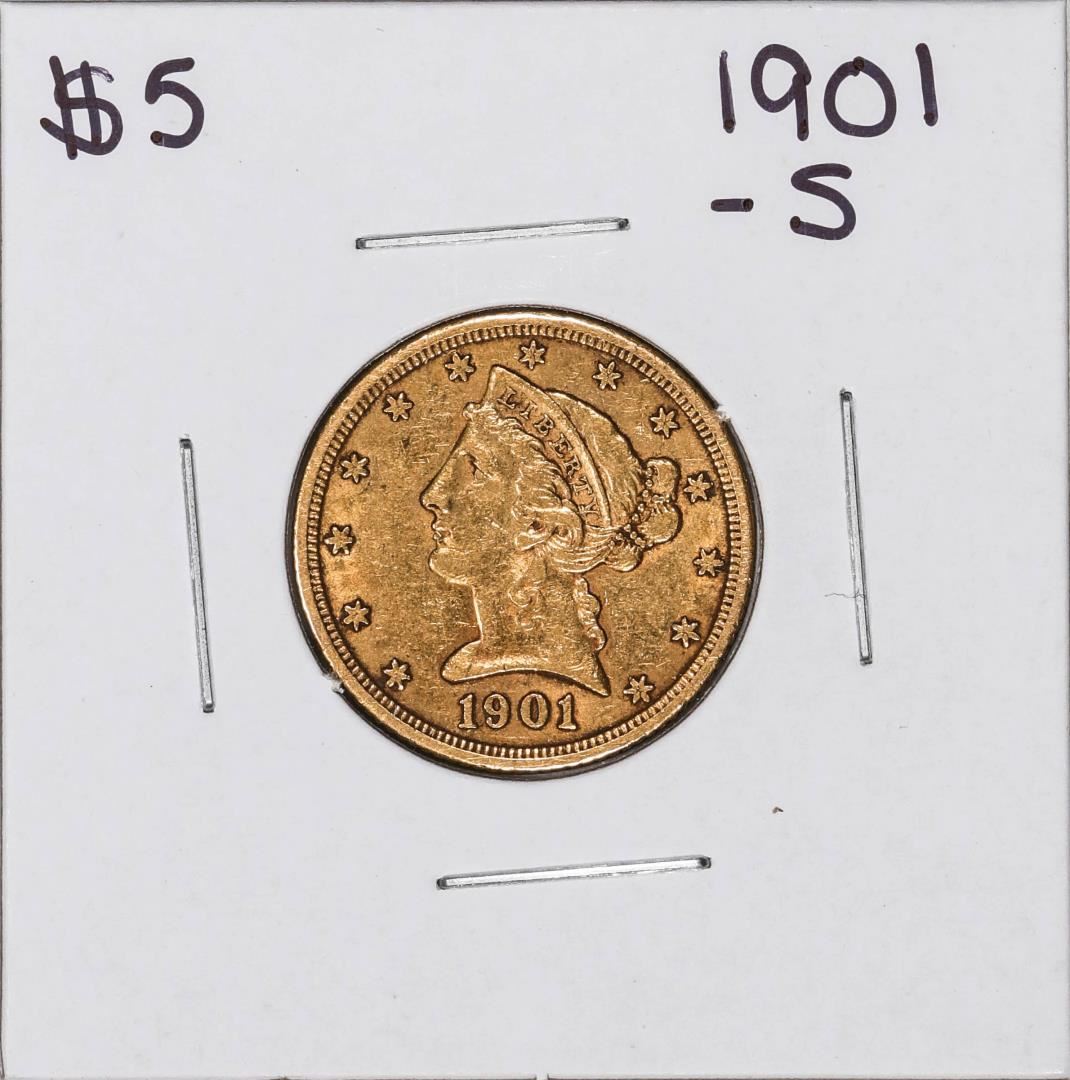 One 1901-S $5 Liberty Head Half Eagle Gold Coin.