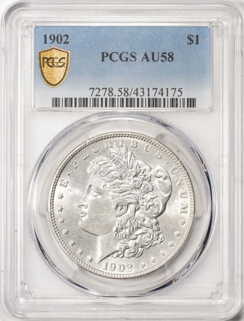 One 1902 $1 Morgan Silver Dollar Coin PCGS AU58. PCGS Graded.
