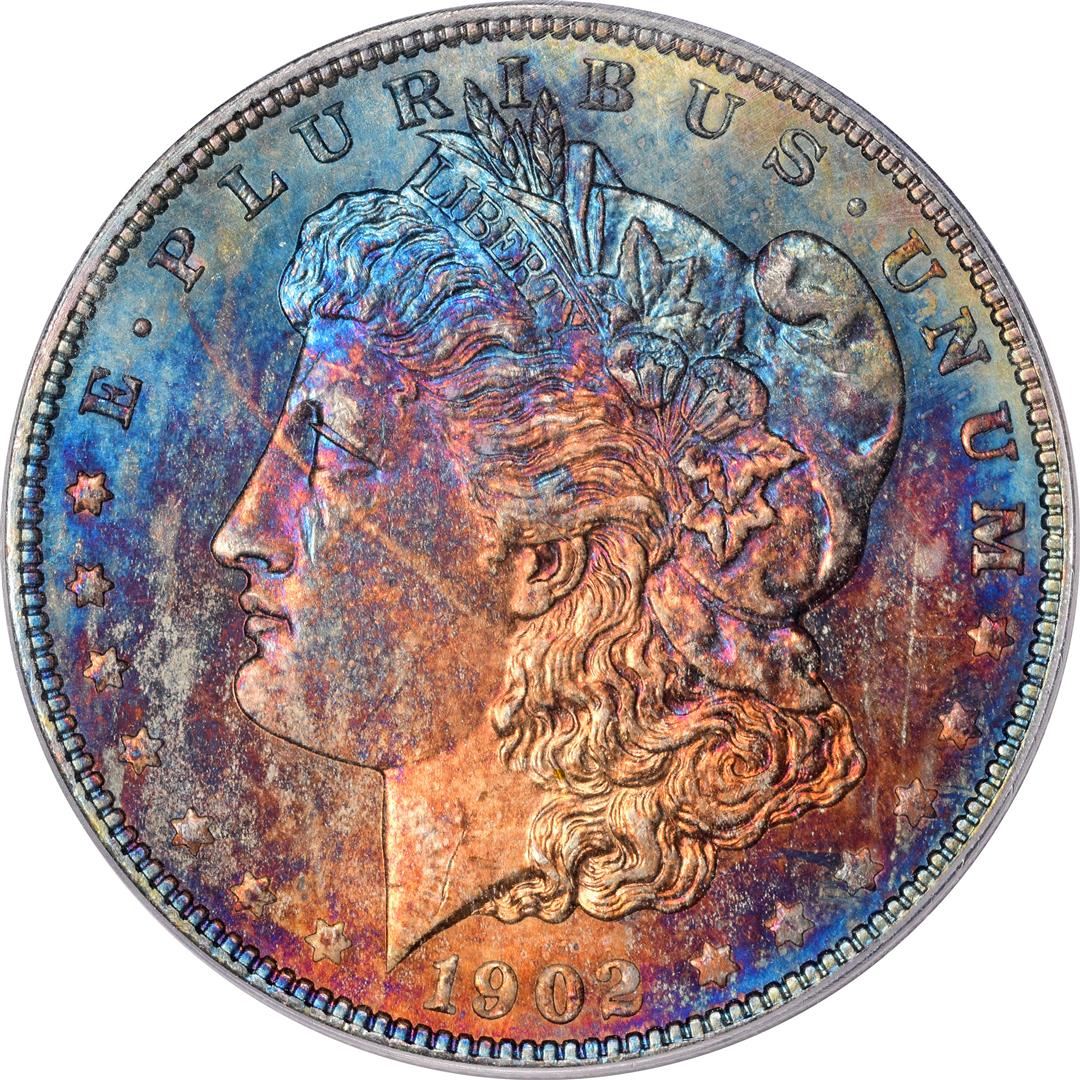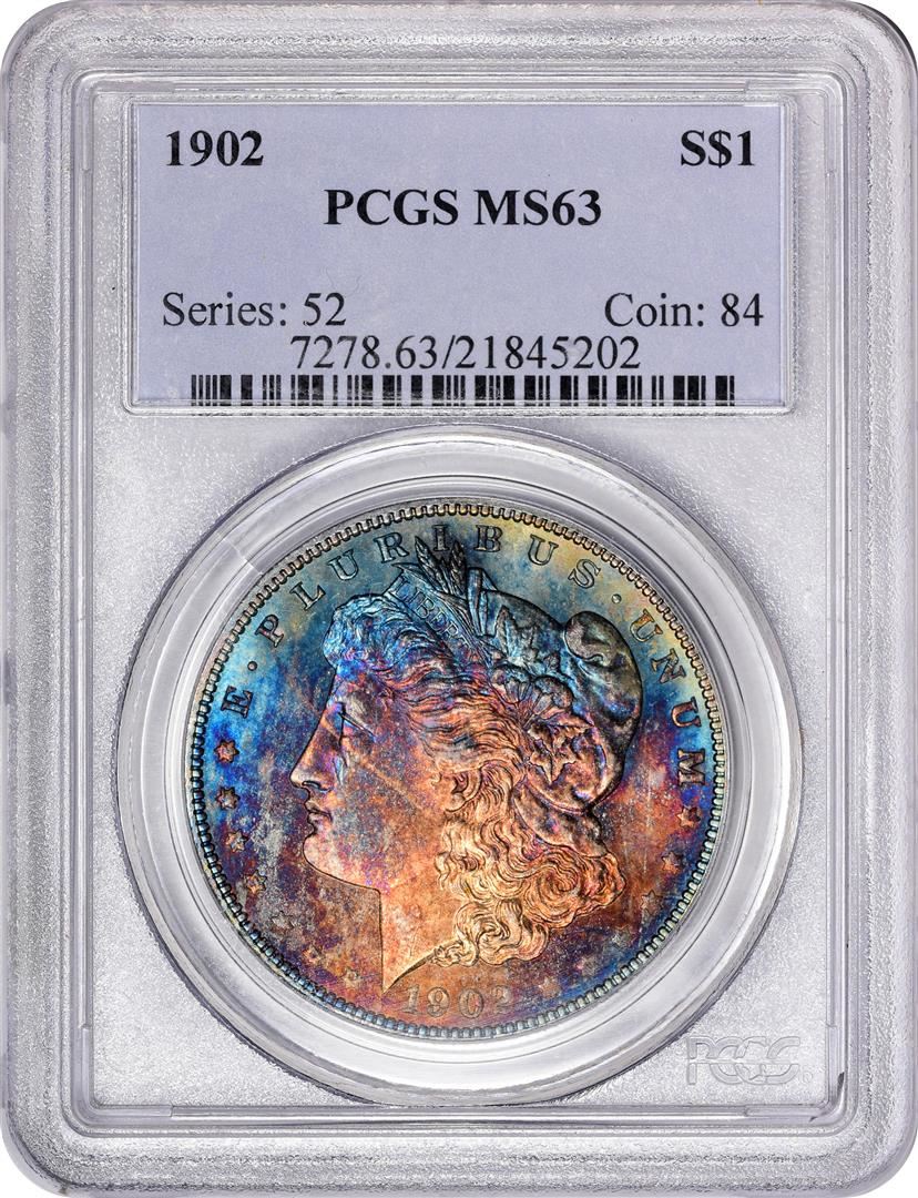 One 1902 $1 Morgan Silver Dollar Coin PCGS MS63 Amazing Toning. PCGS Graded.