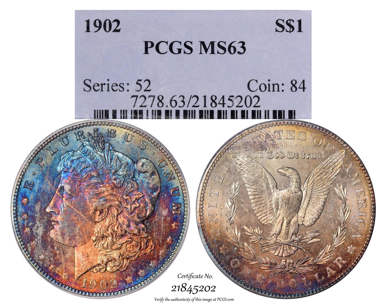 One 1902 $1 Morgan Silver Dollar Coin PCGS MS63 Amazing Toning. PCGS Graded.