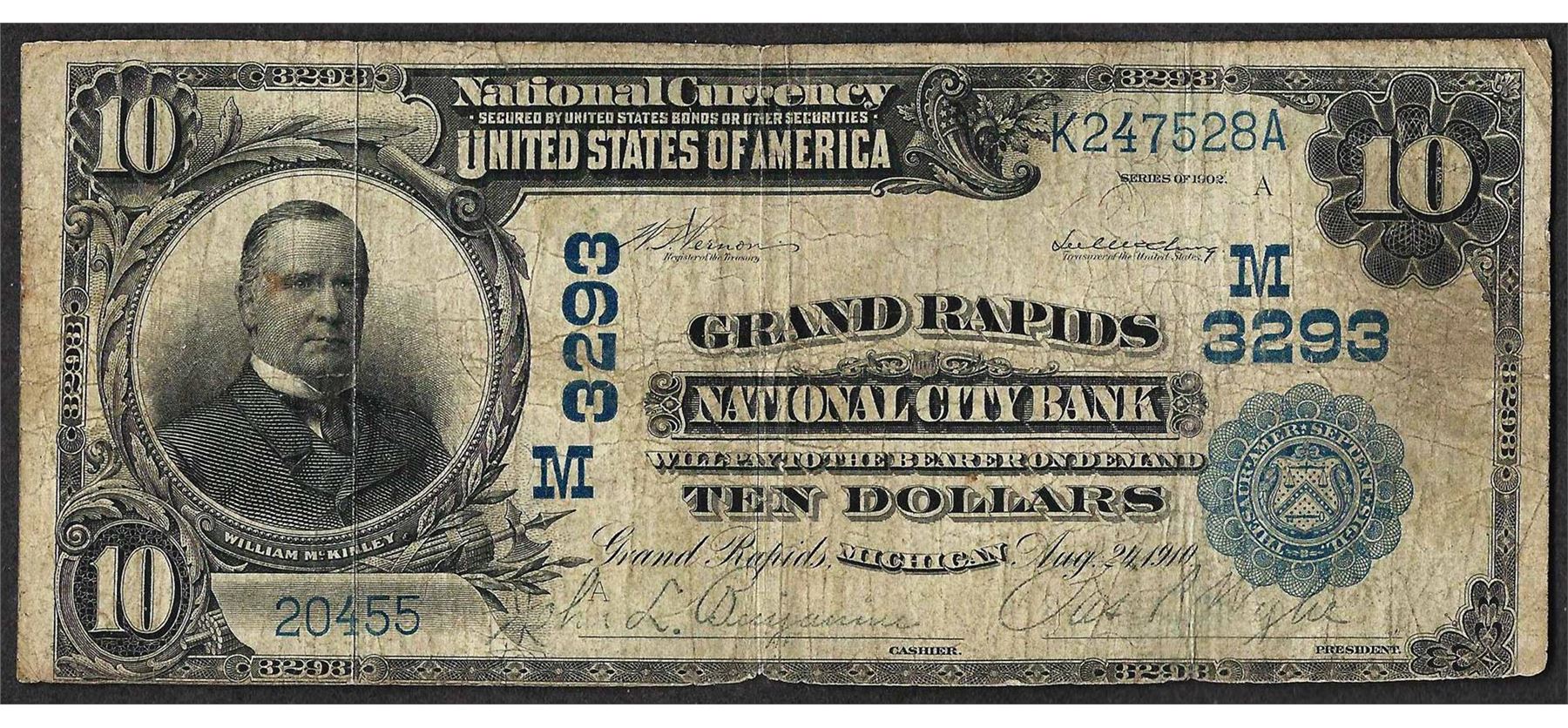1902 $10 Grand Rapids, MI National Currency Note CH# 3293