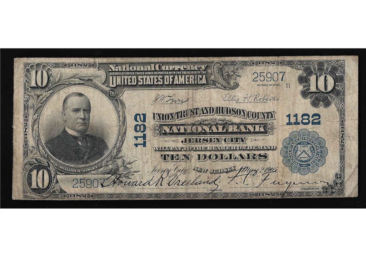 One 1902 $10 The Hudson National Bank of Jersey City, NJ National Currency Note.