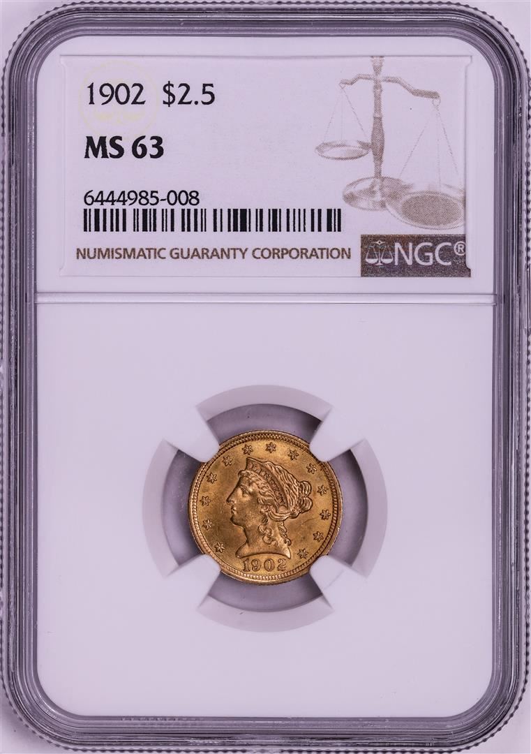 1902 $2 1/2 Liberty Head Quarter Eagle Gold Coin NGC MS63