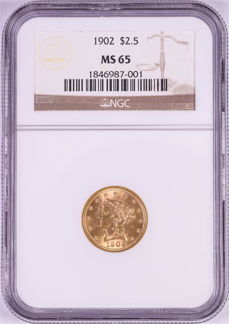1902 $2 1/2 Liberty Head Quarter Eagle Gold Coin NGC MS65