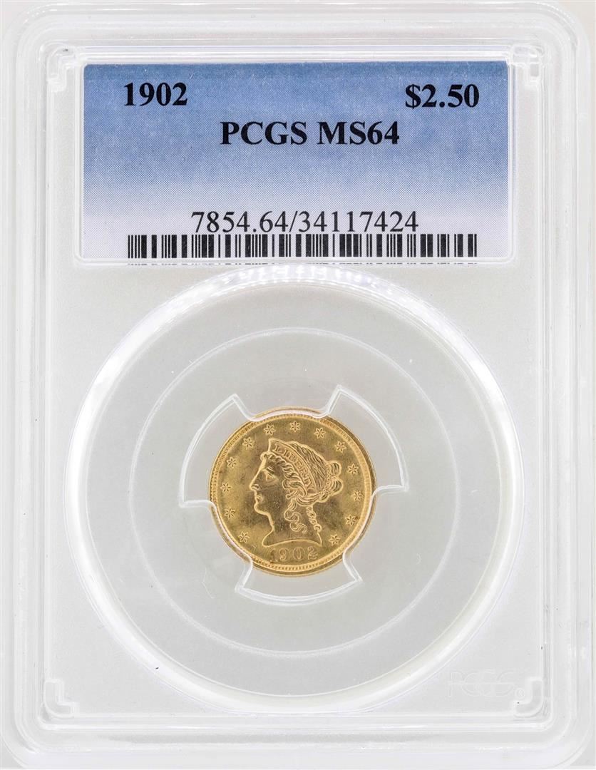 1902 $2 1/2 Liberty Head Quarter Eagle Gold Coin PCGS MS64