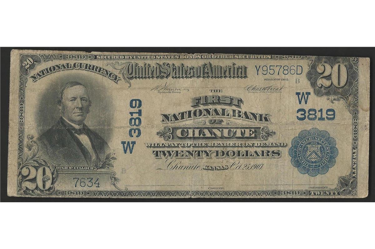 One 1902 $20 The First National Bank of Chanute Bank Note.