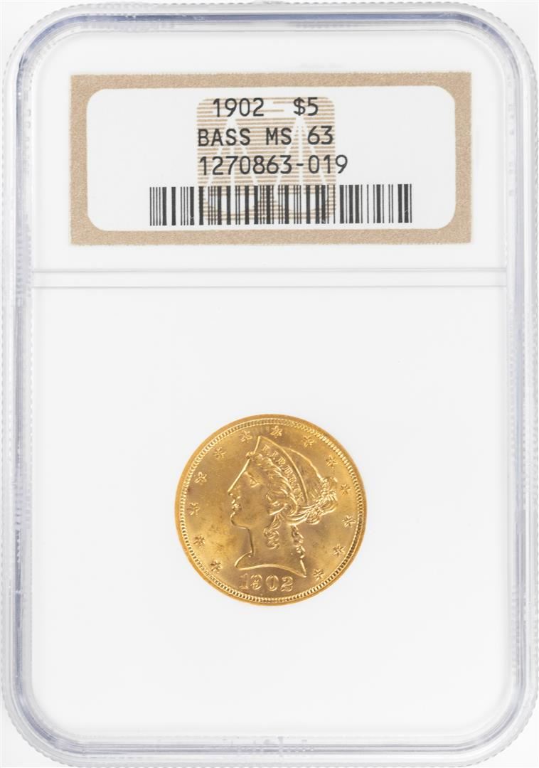 1902 $5 Liberty Head Half Eagle Gold Coin NGC MS63 Bass Collection