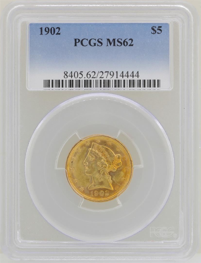 One 1902 $5 Liberty Head Half Eagle Gold Coin PCGS MS62. PCGS Graded.