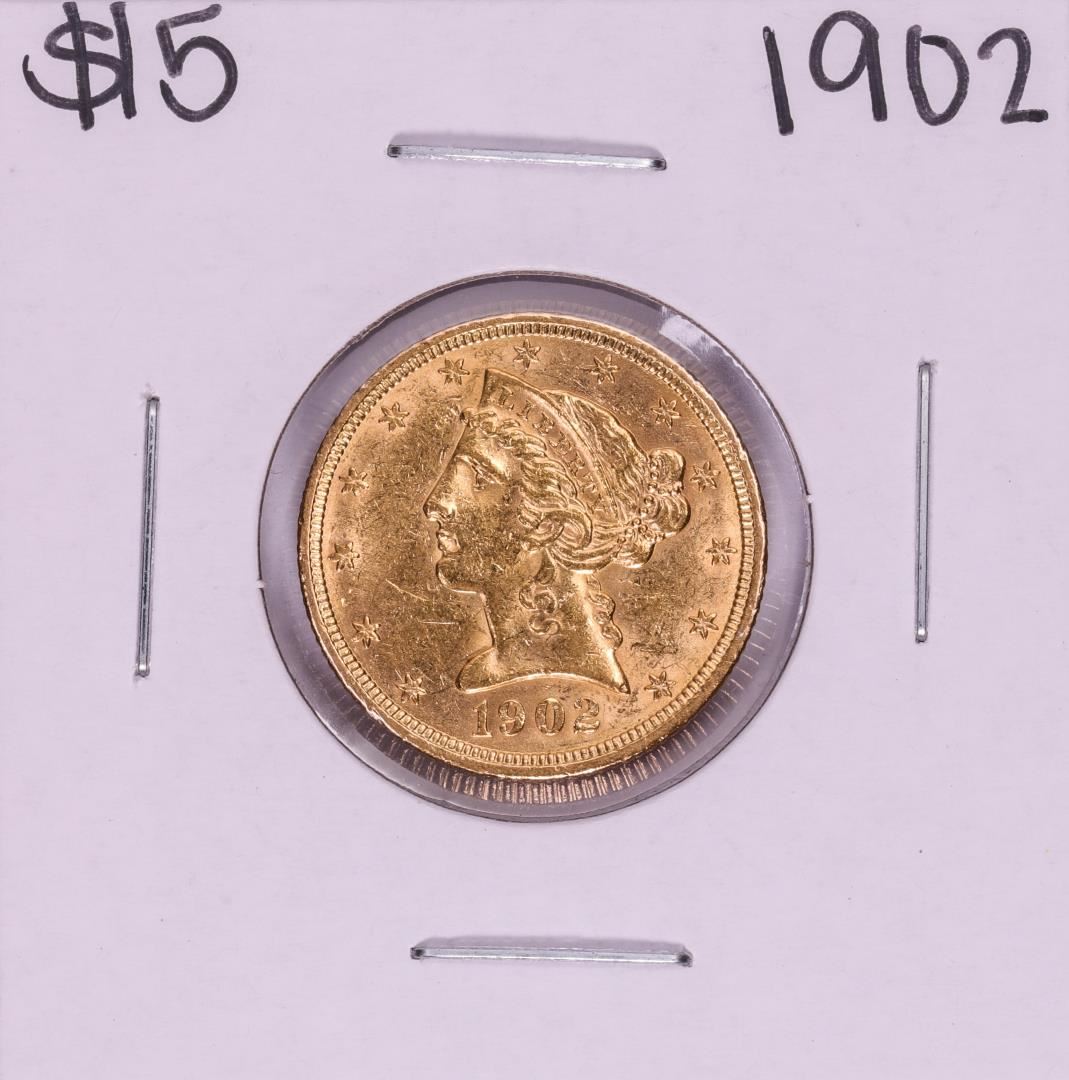 One 1902 $5 Liberty Head Half Eagle Gold Coin.