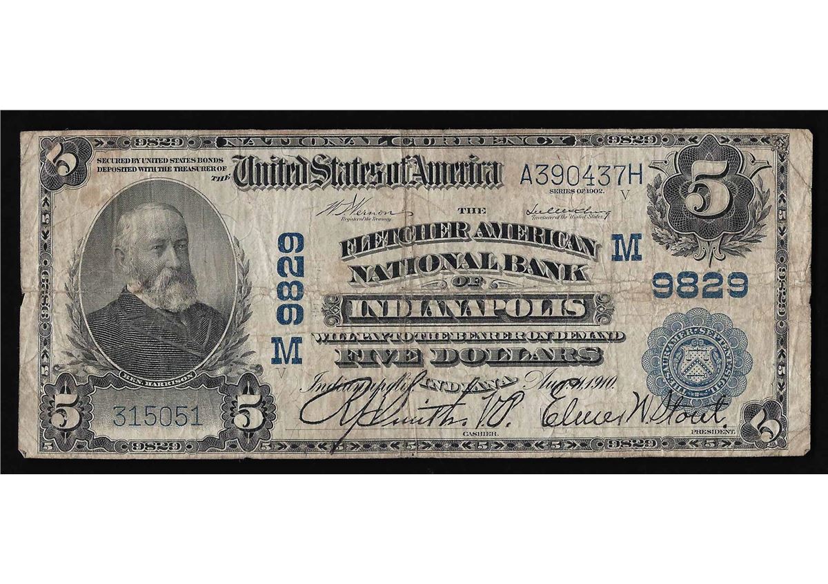 One 1902 $5 The Fletcher American National Bank of Indianaplois Currency Note.