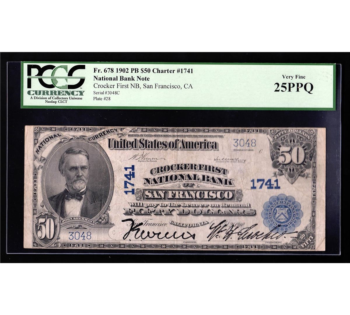 1902 $50 Plain Back Crocker First National Bank of San Francisco PCGS VF 25PPQ
