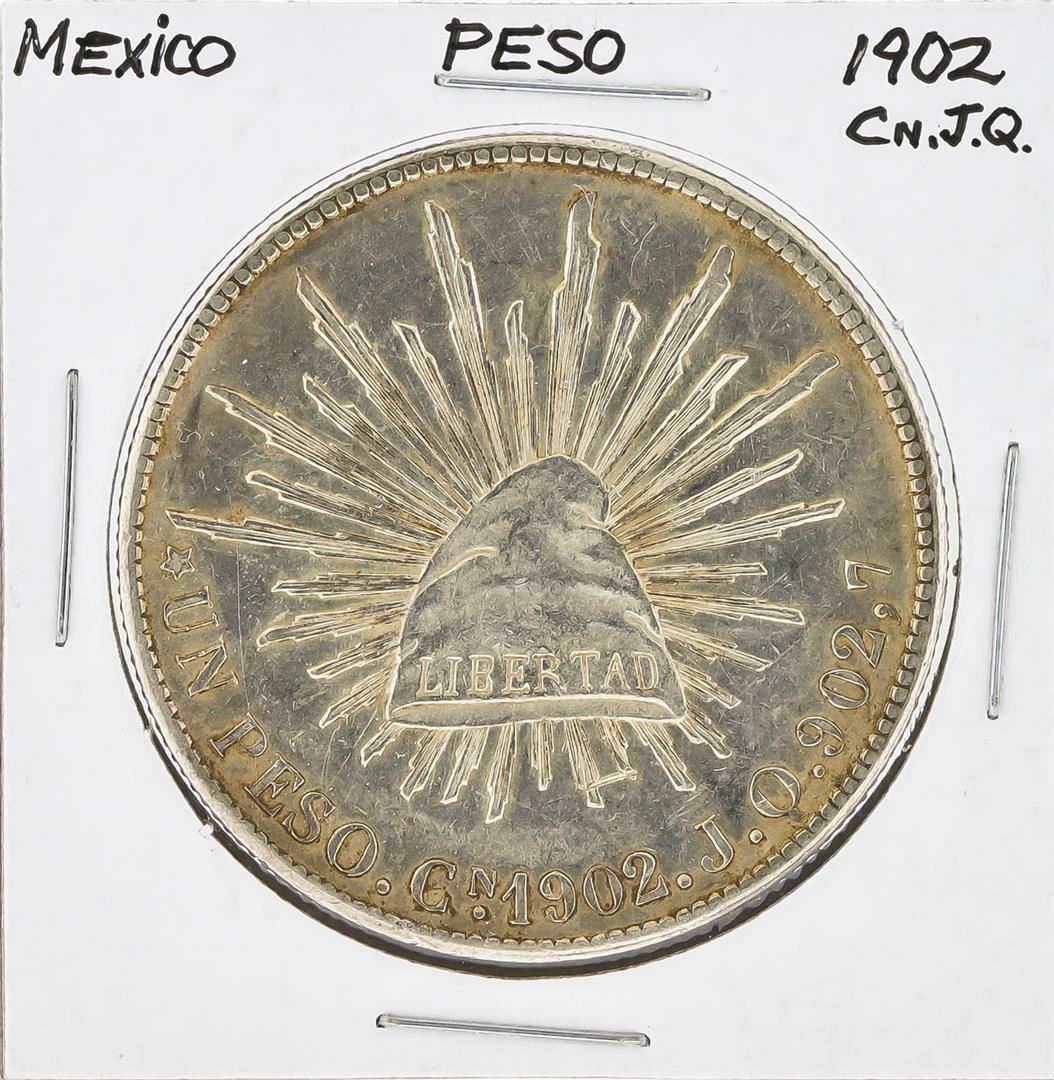 One 1902 Cn.J.Q MO Mexico Peso Silver Coin.
