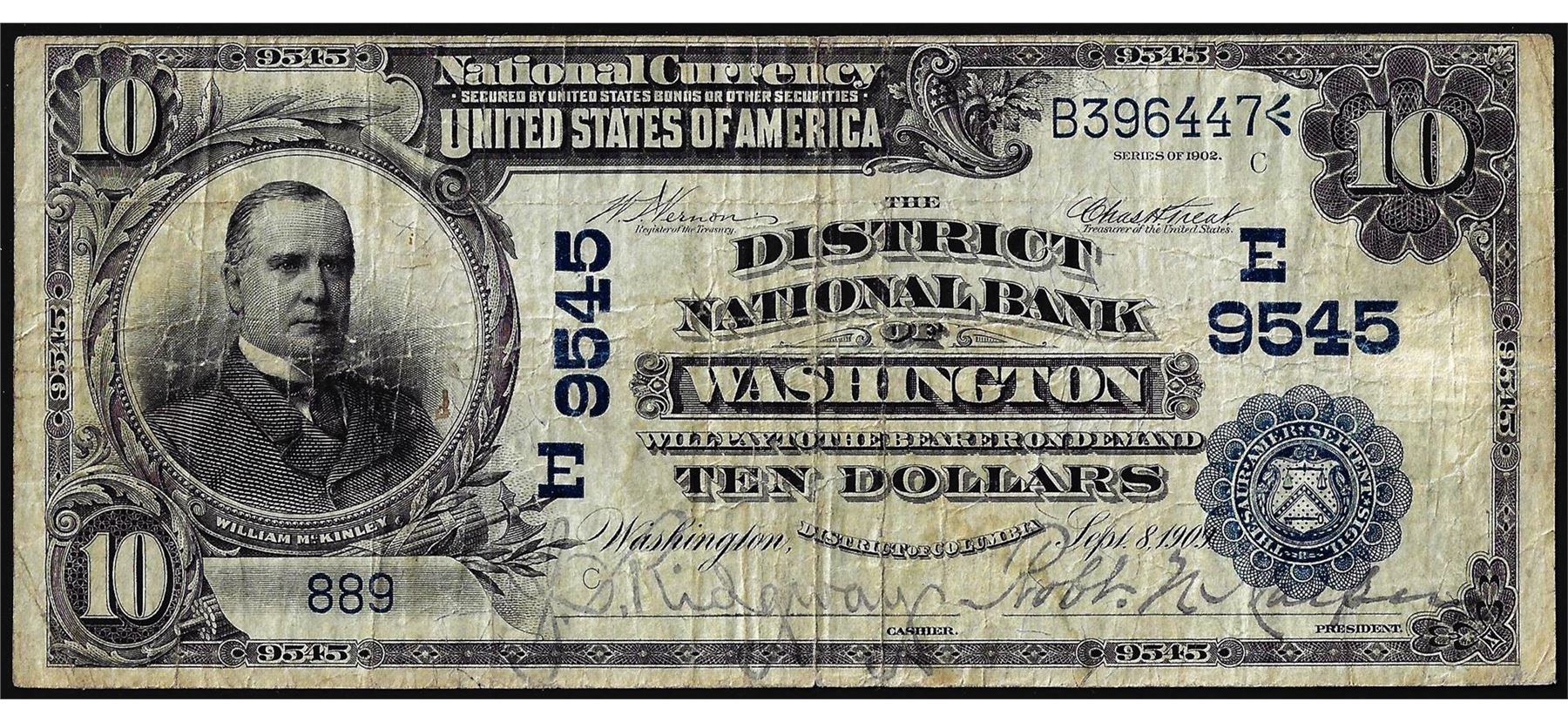 One 1902 DB $10 Franklin NB of Washington, DC CH# 9545 National Currency Note.