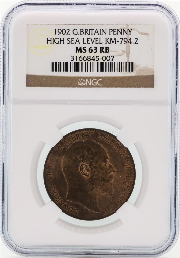 One 1902 Great Britain High Sea Level Penny NGC MS63RB. NGC Certified.
