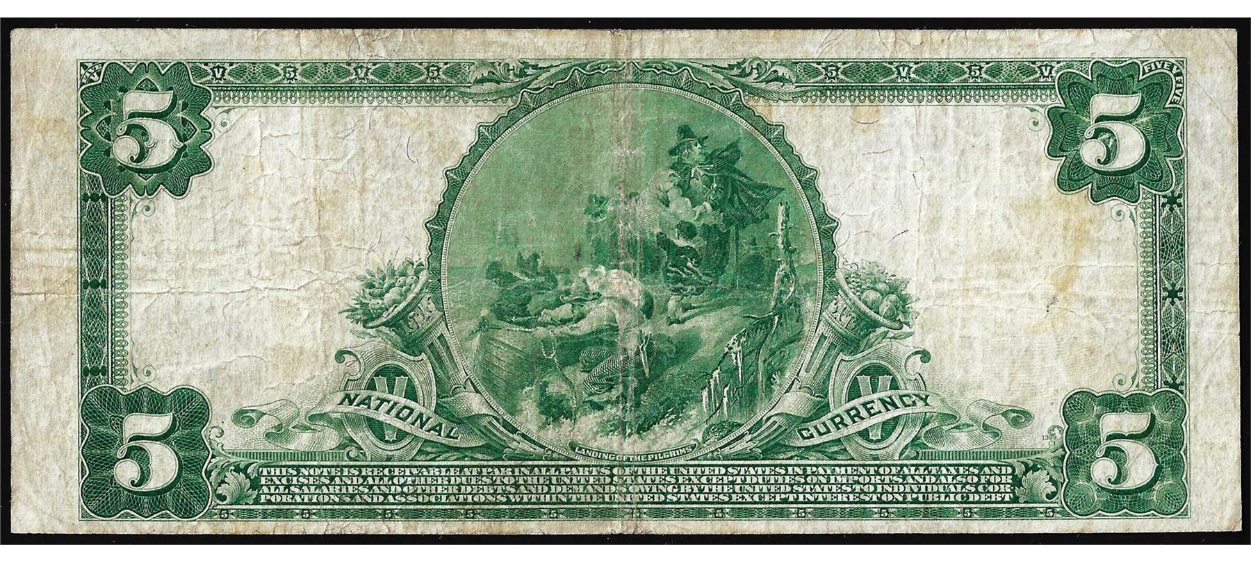 One 1902 PB $5 Citizens NB of Washington, Pennsylvania CH# 3383 National Currency Note.