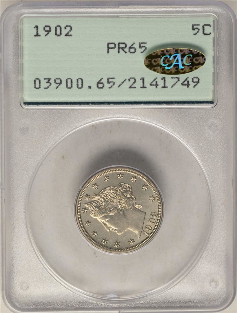 1902 Proof Shield Nickel Coin PCGS PR65 Gold CAC Sticker!