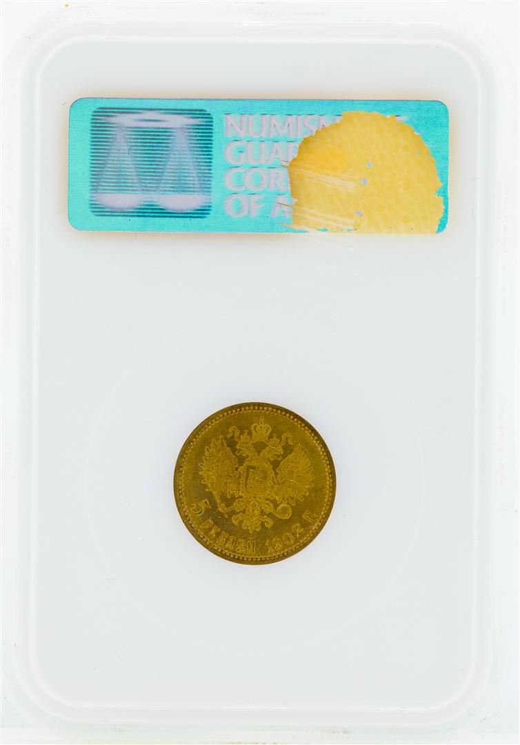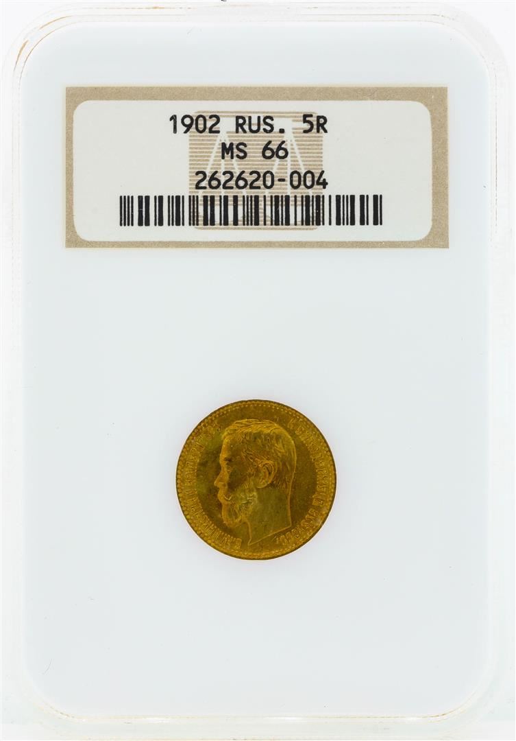 One 1902 Russia 5 Roubles Gold Coin NGC MS66. NGC Certified.