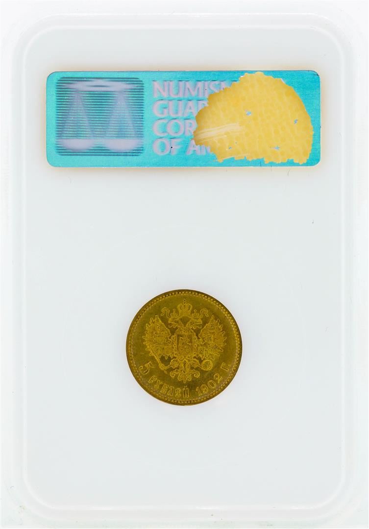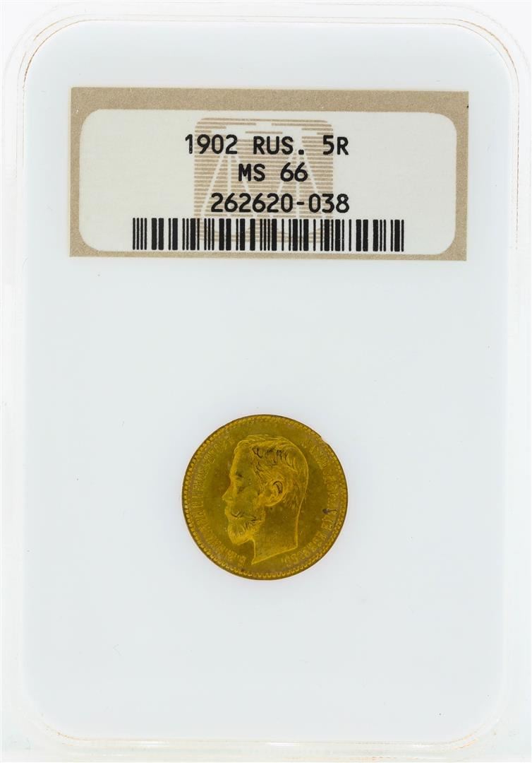 One 1902 Russia 5 Roubles Gold Coin NGC MS66. NGC Certified.
