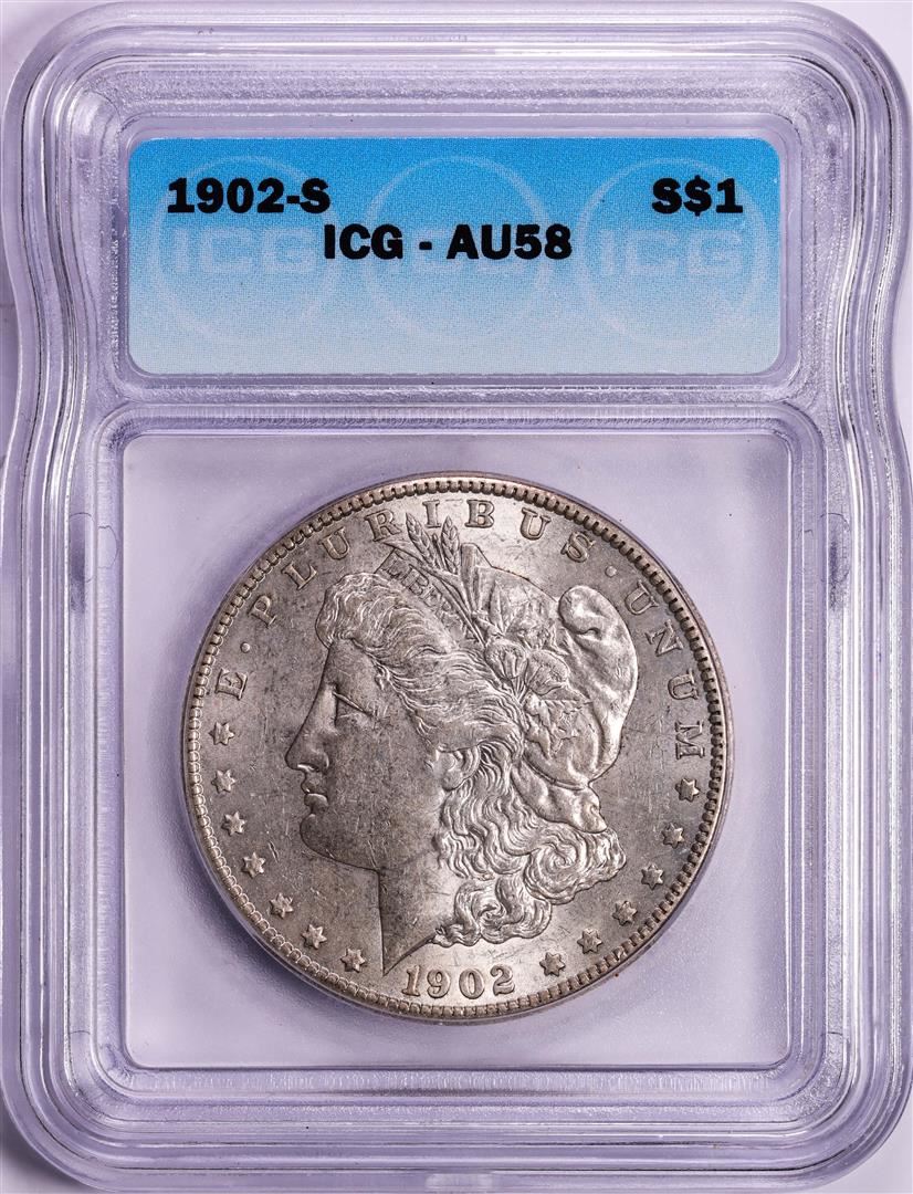 One 1902-S $1 Morgan Silver Dollar Coin ICG AU58. ICG Certified.
