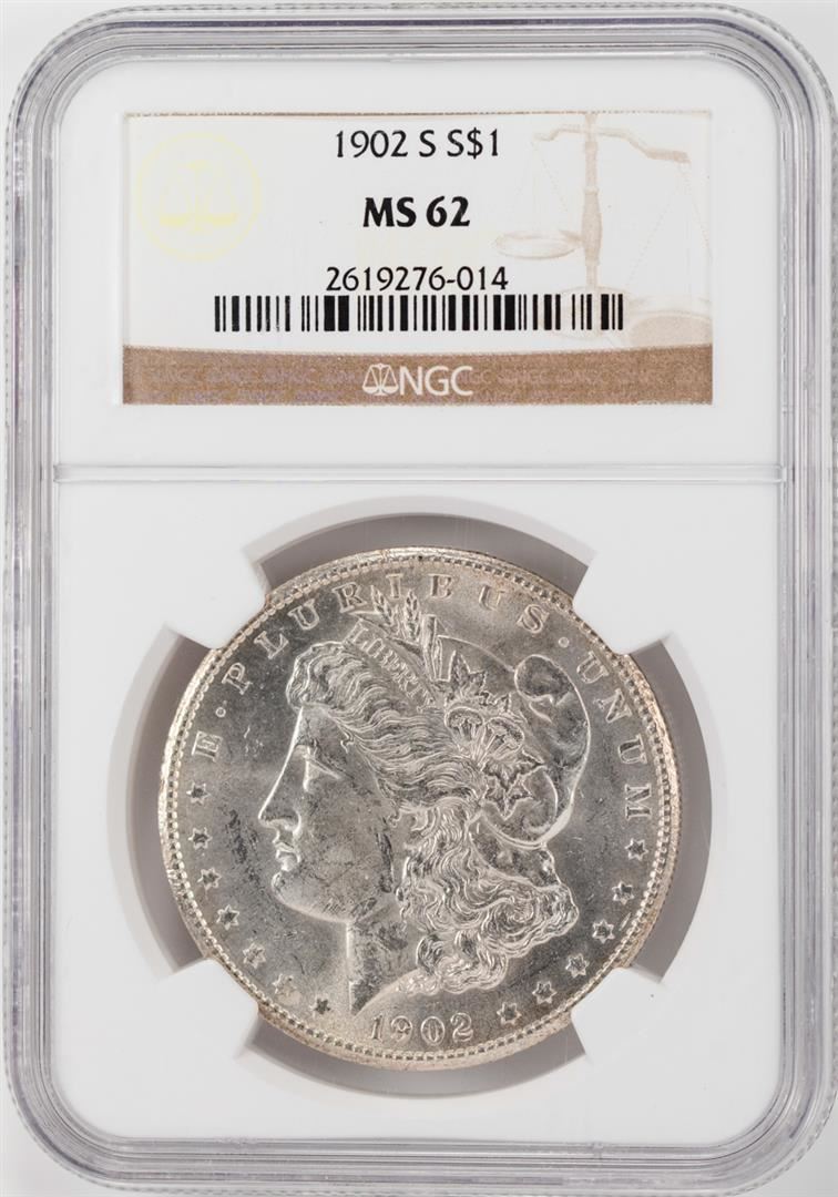 One 1902-S $1 Morgan Silver Dollar Coin NGC MS62. NGC Certified.