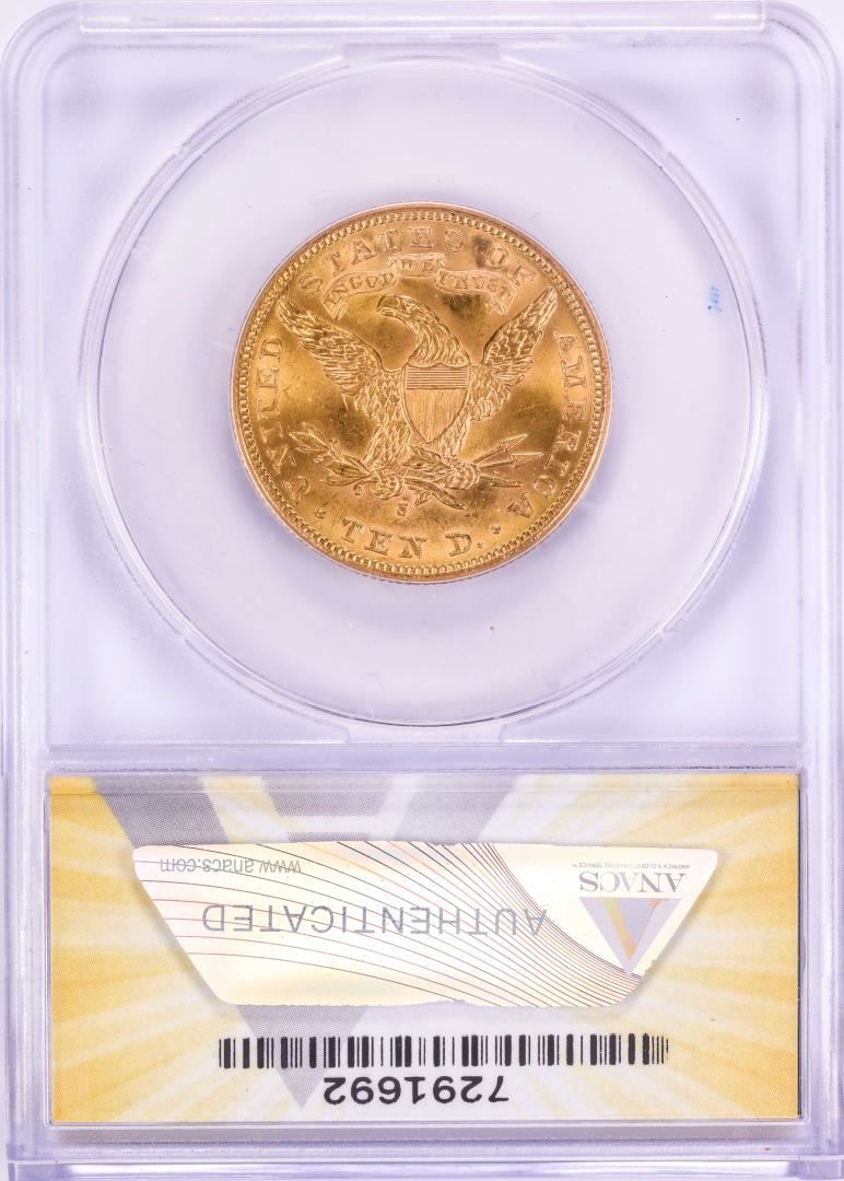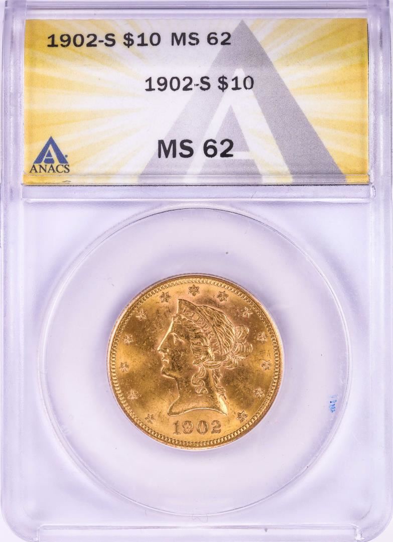 One 1902-S $10 Liberty Head Eagle Gold Coin ANACS MS62. ANACS Certified.