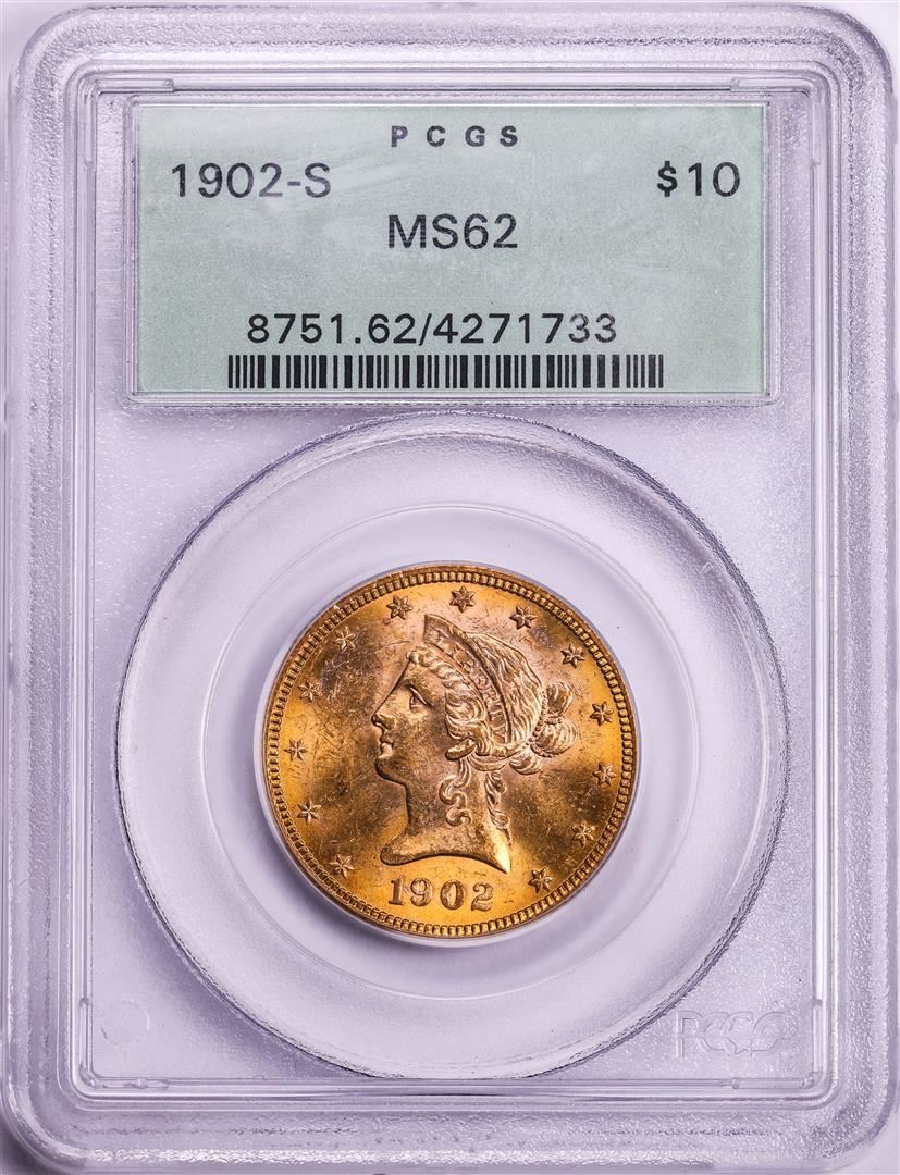 One 1902-S $10 Liberty Head Eagle Gold Coin PCGS MS62 Old Green Holder. PCGS Graded.