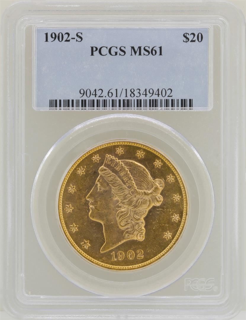 One 1902-S $20 Liberty Head Double Eagle Gold Coin PCGS MS61. PCGS Graded.